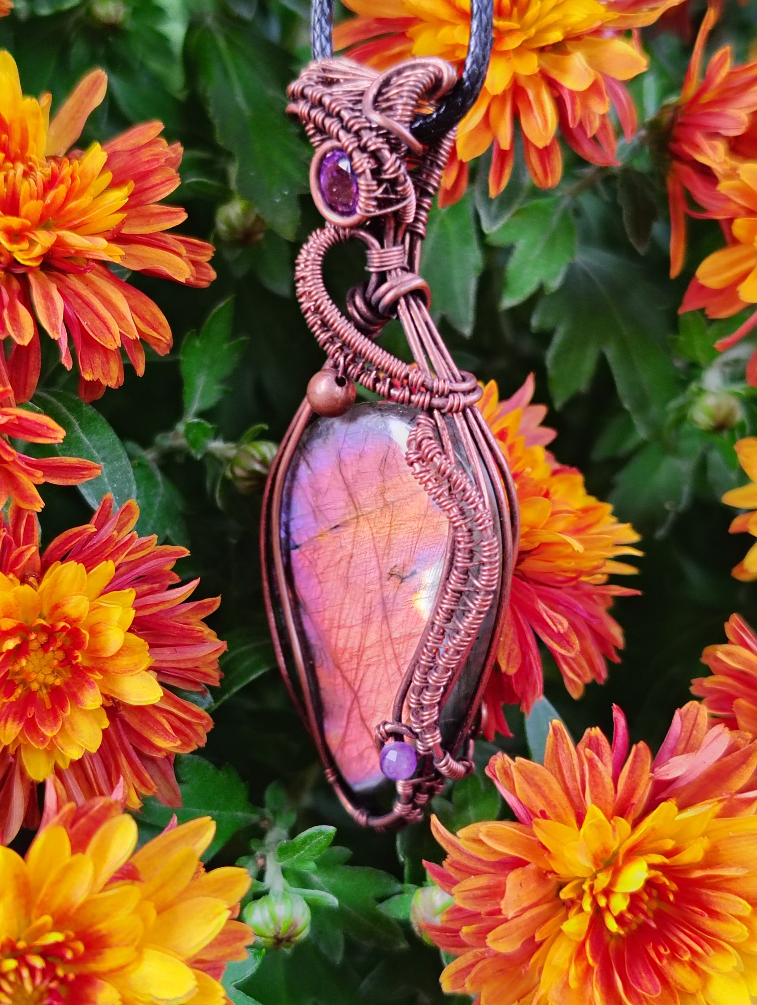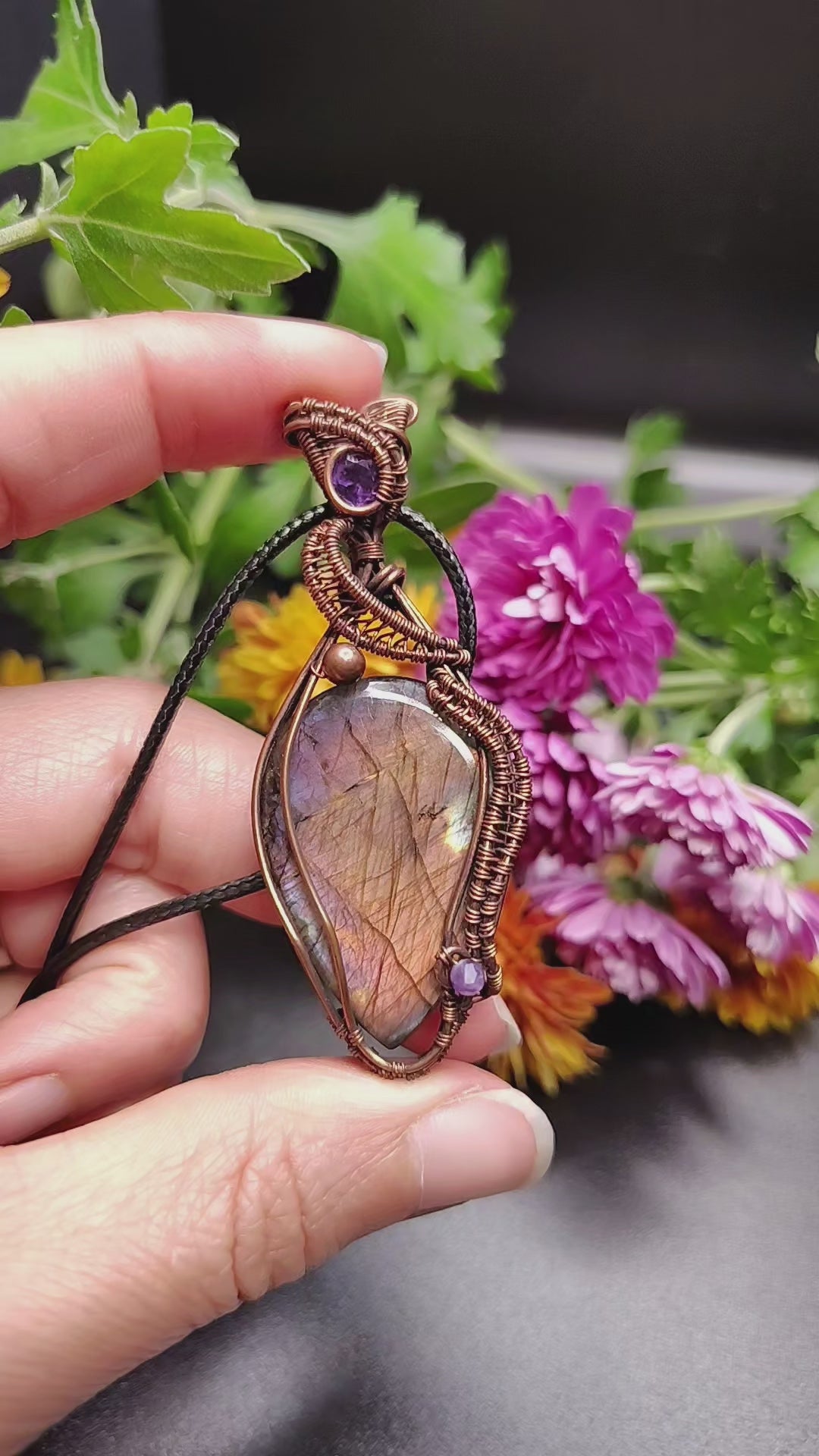 Wrapped and weaved oxidized copper wire, accented with Amethyst for extra intuition and protection on your spiritual journey.